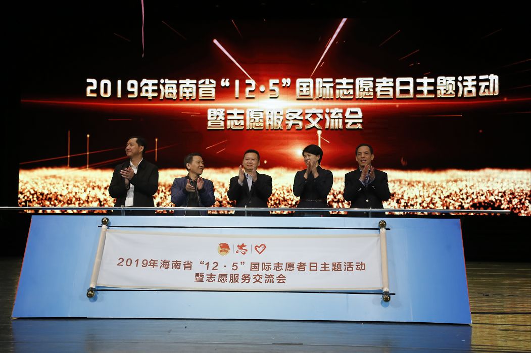 2019年海南省“12.5”国际志愿者日主题活动暨志愿服务交流会在海口开幕,各市县、高校、省直机关青年社会组织等志愿服务组织代表以及全省爱心企业志愿服务项目团队等约1600人参加。省委宣传部副部长、省文明办主任张美文团省委党组成员、副书记罗桦等领导出席开幕式。