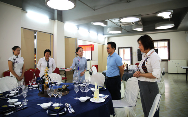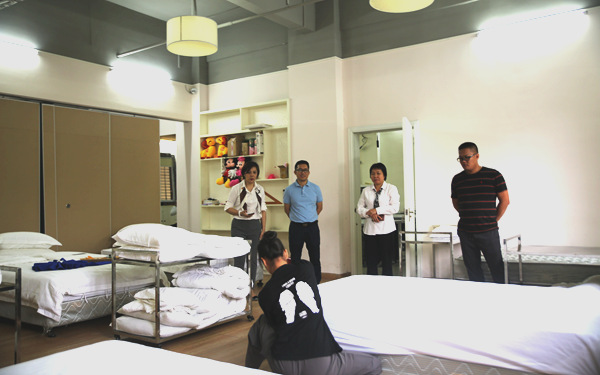 同天下午,曾锋书记也对我院旅游系实训室进行走访,旅游系党总支书记林明霞、主任李旭芳陪同走访。走访过程中,曾锋书记现场观看了旅游系的客房、西餐、中餐技能大赛三位选手优秀的技能展示,对他们的比赛成绩作出了肯定与表扬,希望他们能再接再厉,继续做到更好,成长为这个行业的优秀人物。