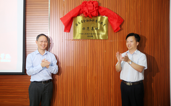 随后,我院副院长杨学前和中国人民银行海口中心支行党委委员、工会主任吴道义共同为基地揭牌。