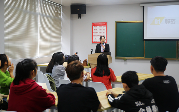 揭牌仪式后,随即开展基地设立后的首场金融知识专题讲座。讲座通过专业人员的讲解,以“校园贷”、“套路贷”等现象为例,揭示“校园贷”、“套路贷”造成的危害,并提出应对措施,警示大家识别“校园贷”、“套路贷”陷阱,帮助同学们树立正确的理财和消费观念,提升反假防骗的意识和能力。讲座深入浅出,活生生的例子让在场同学受到很大触动。