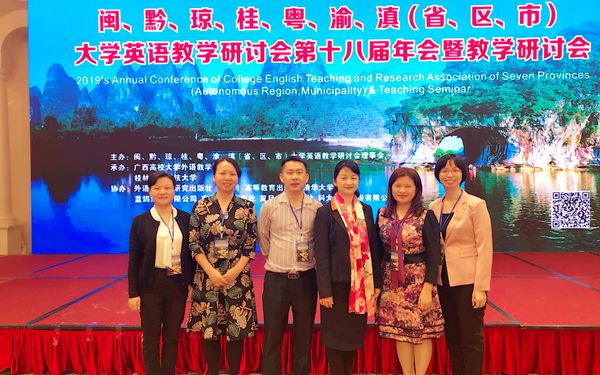 11月16日,闽、黔、琼、桂、粤、渝、滇(省、区、市)大学英语教学研讨会第十八届年会暨教学研讨会在广西桂林召开。本次会议由闽、黔、琼、桂、粤、渝、滇(省、区、市)大学英语教学研讨会理事会主办,广西高校大学外语教学研究会、桂林电子科技大学承办,来自七省(区、市)80所高校的近300位专家及教师聚集一堂,共同探讨新时代信息化背景下大学英语课程体系改革的新途径。我院李渝凤院长率教务处负责人林勇、吴慧华,英语系副主任张清萍,国际商务系负责人温春雨,公共外语教研室主任杨丽娟一行6人参加此次会议,李渝凤院长还受邀在会上作主旨发言。