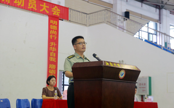 参训部队参谋长黄文亮在讲话中指出军训是新生们迈入大学的第一步,希望同学们能迎难而上、挑战自我,增强自身的国防知识,同时以昂扬的意志和高度的热情配合教官,圆满完成此次的军训。