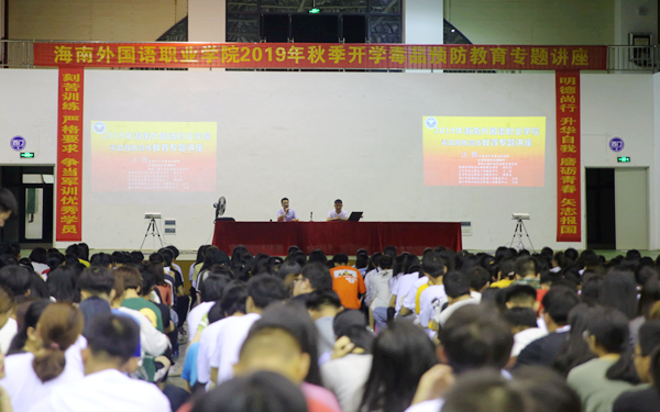 9月12日晚,我院在体艺馆举办毒品预防教育专题讲座,邀请海南省高校禁毒联盟主席、省高校禁毒教育宣讲团团长、全国青少年禁毒培训师汪腾老师到校为2019级全体新生讲解毒品预防知识。学生处负责人张政主持讲座。