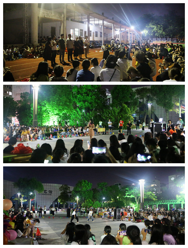 傍晚圆月初升时分,由我院各个系部为新生部署安排的赏月晚会在校园里各处召开,活动现场学生们围坐在一起,一同玩着小游戏,分享小吃食,欣赏着舞台中间各位老师及学长学姐们带来的劲歌劲舞。大家高声笑谈,嬉笑打闹,歌舞声、欢笑声萦绕了整个校园,久久不息。这样一个个让全体军训教官、新生难忘的中秋庆祝活动,仿佛让大家思乡的淡愁也跟着朦胧的月娘一起,不声不响地归隐到云层里去了。