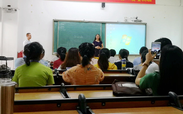 在随后的分班环节中,参加此次培训班的外籍教师在我院综合楼BE102教室进行了自我介绍,外籍教师对学员情况进行了测试和分班。