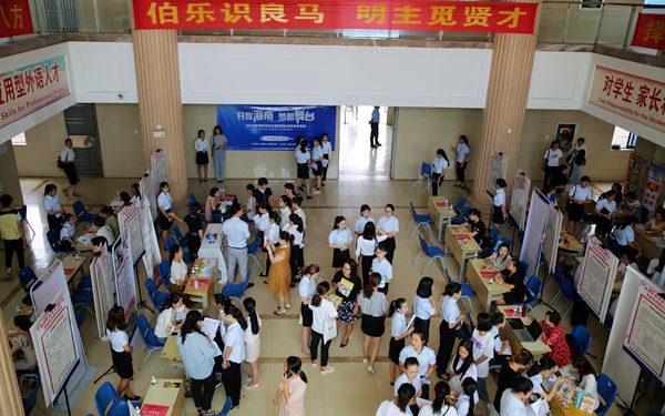 5月12日上午,我院英语系在综合楼一楼大厅举办2019届毕业生和2020届实习生招聘会。此次招聘会吸引了海口咕噜哈教育文化咨询有限公司、海南春田花花儿童教育有限公司、艺雅思幼儿园、海口星海湾豪生大酒店、三亚中心皇冠假日酒店等41家企业单位招贤纳才,招聘岗位主要有英语教师、幼师、早教老师,也有酒店接待员、服务员、礼宾员等多个领域400多个就业岗位,为我院学生提供了多方向的就业选择。