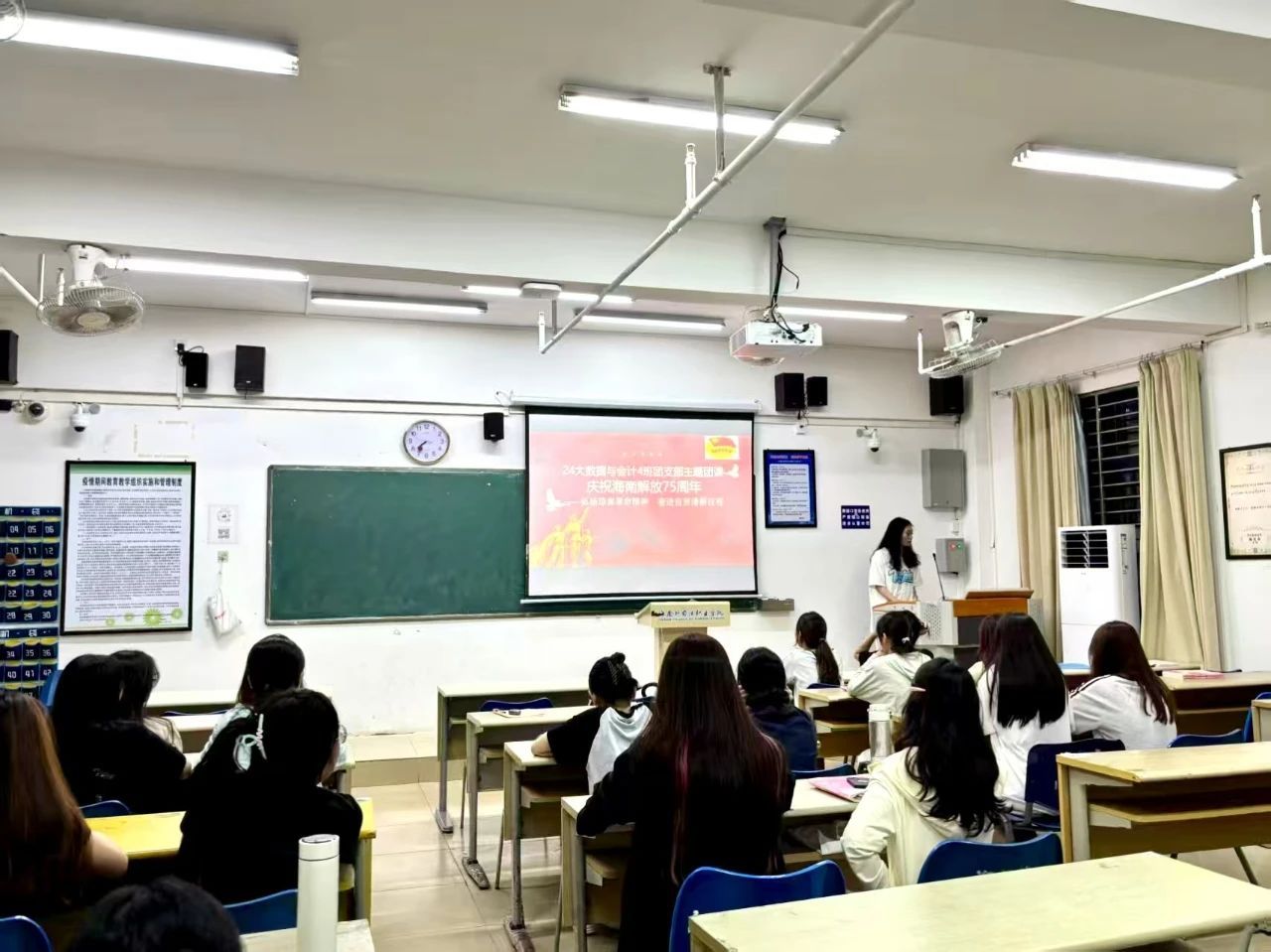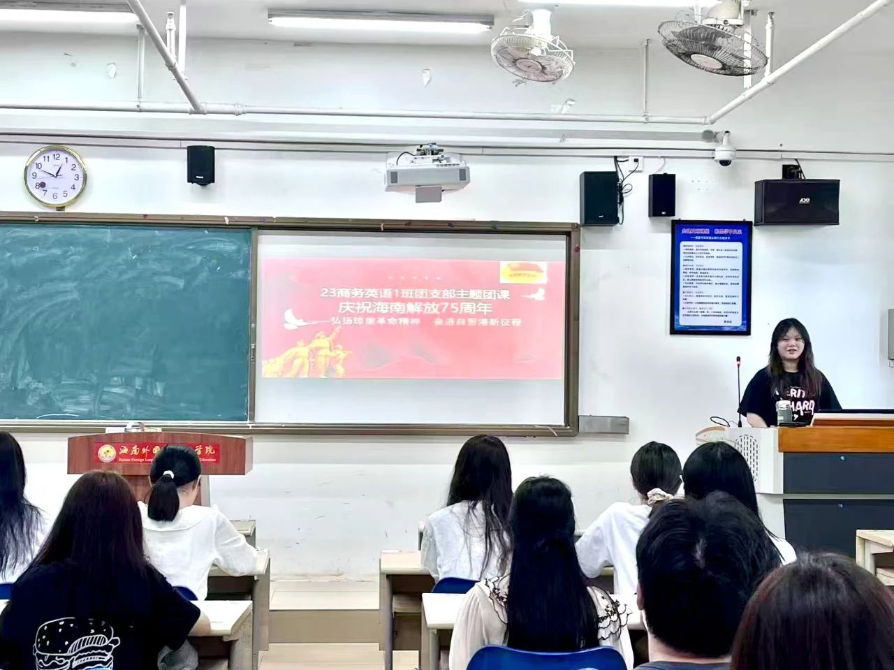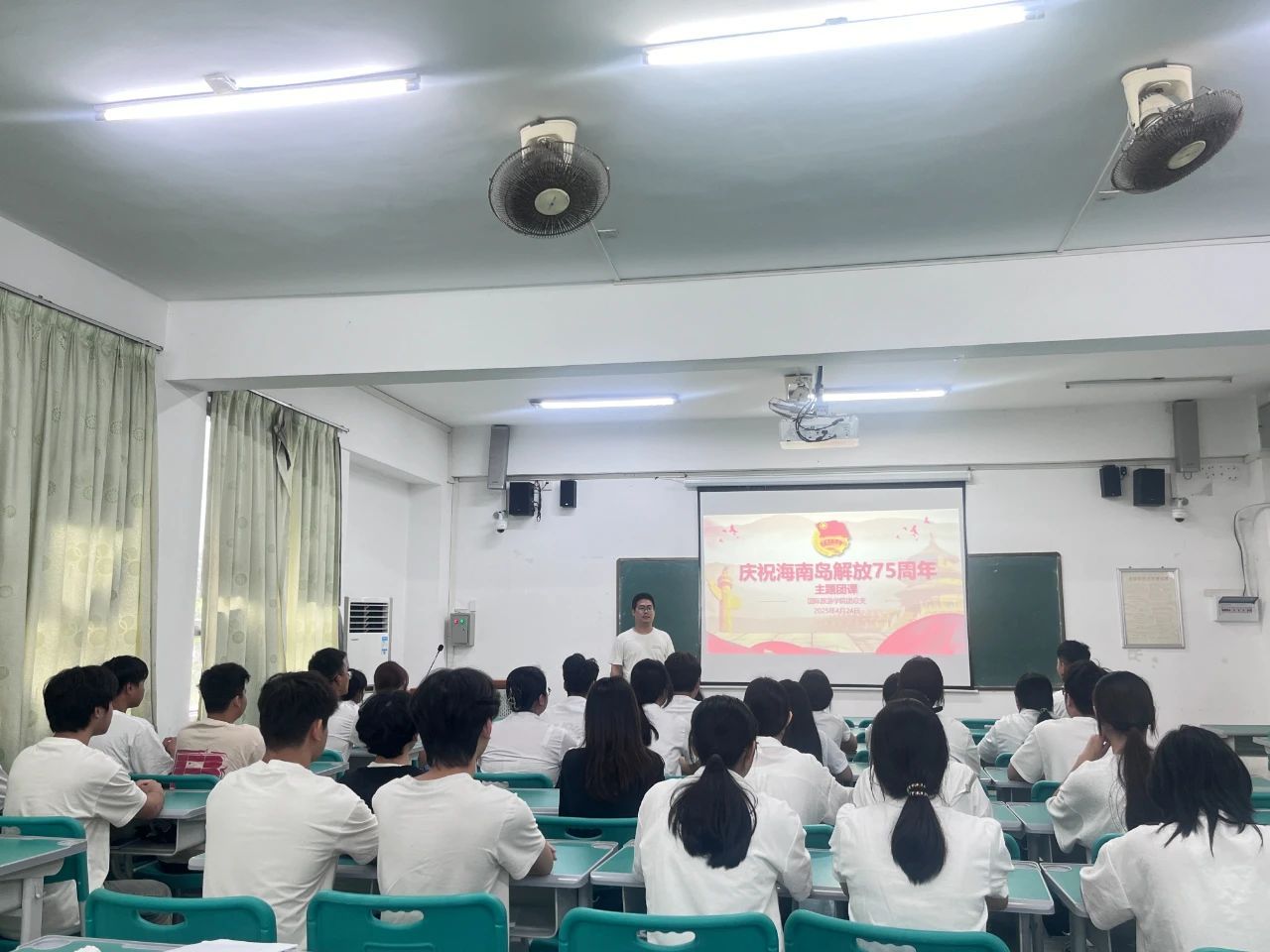 4月24日,二级学院团总支书记走上讲台,为团员青年们讲授“庆祝海南岛解放75周年”主题团课。课堂上,以解放海南岛战役中的“木船打兵舰”战例为切入点,结合海南自贸港建设的新使命,探讨琼崖精神的时代内涵。随后,全校284个团支部在团支书的带领下以上台分享团课心得、交流感悟的形式开展了“庆祝海南岛解放75周年”的主题团日活动。这场跨越时空的对话,既是对革命历史的深情回望,更是对时代使命的庄严回应。团员青年们纷纷表示,传承琼崖精神,不仅要铭记琼崖革命前辈“孤岛奋战”的坚韧,更要践行新时代海南人“敢闯敢试”的魄力,以创新实践为自贸港建设注入青春动能。