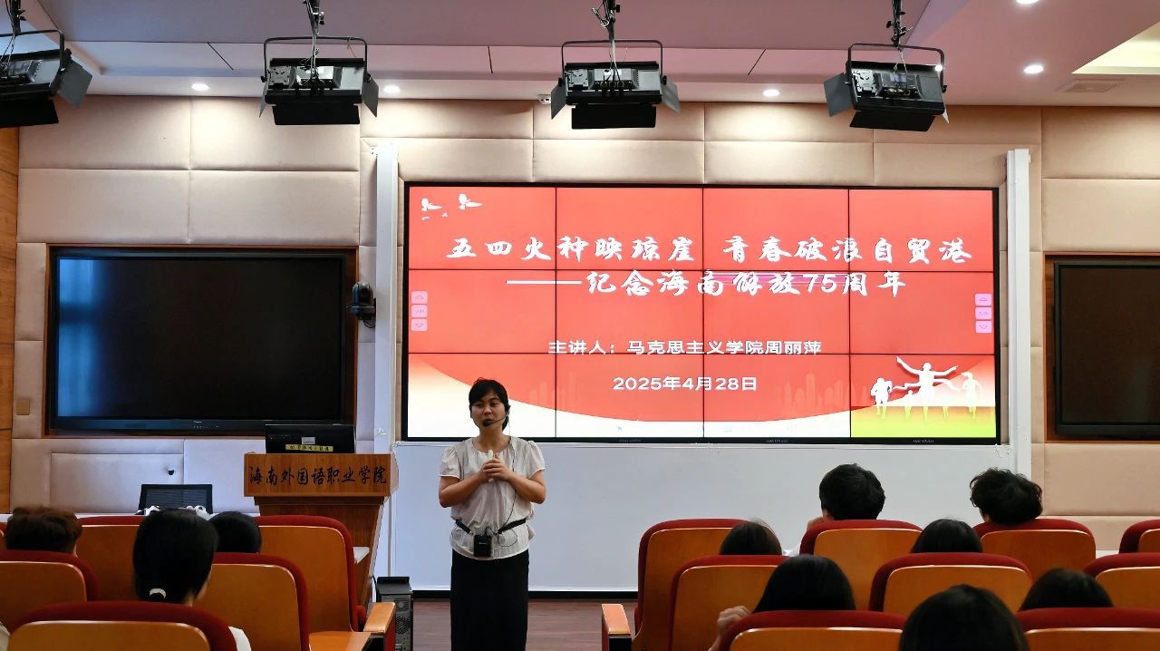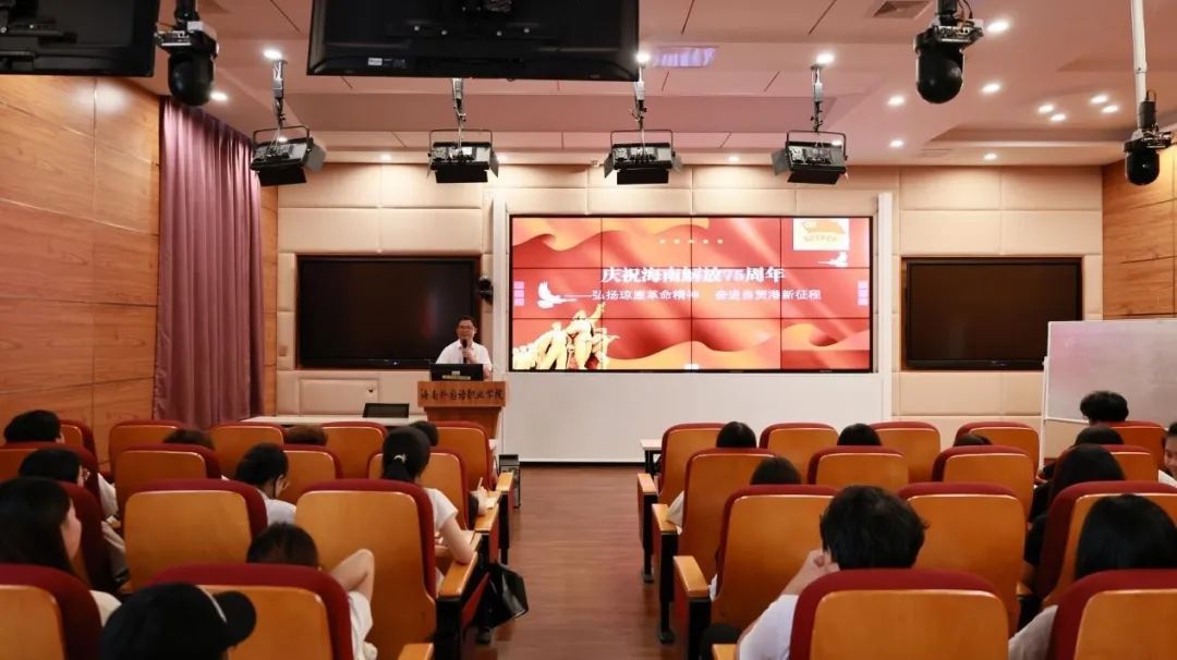 校团委于4月24日至28日邀请了陈若团、周丽萍、黄华三位教师为团学骨干、入团积极分子开展庆祝海南岛解放75周年系列专题讲座。三场讲座从不同历史维度,不同历史视角,讲述解放海南岛的“人民战争”到自贸港建设的“人民共建”的发展进程,让团员青年们深刻领悟到红色基因的传承不是简单的口号,而是要将“人民至上”的价值追求融入专业学习与社会实践,在服务海南自贸港建设的国家战略中校准青春坐标,以思想淬炼筑牢信仰之基。