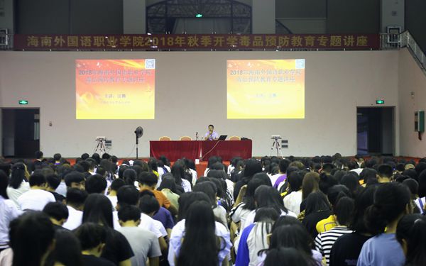 10月9日晚,我院在体艺馆举办毒品预防教育专题讲座,特邀海南省高校禁毒联盟主席、省高校禁毒教育宣讲团团长、全国青少年禁毒培训师汪腾老师来校,为18级全体新生、老生班级所有班干部、学院团委学生会干部及各系部学生会干部讲解毒品预防知识。