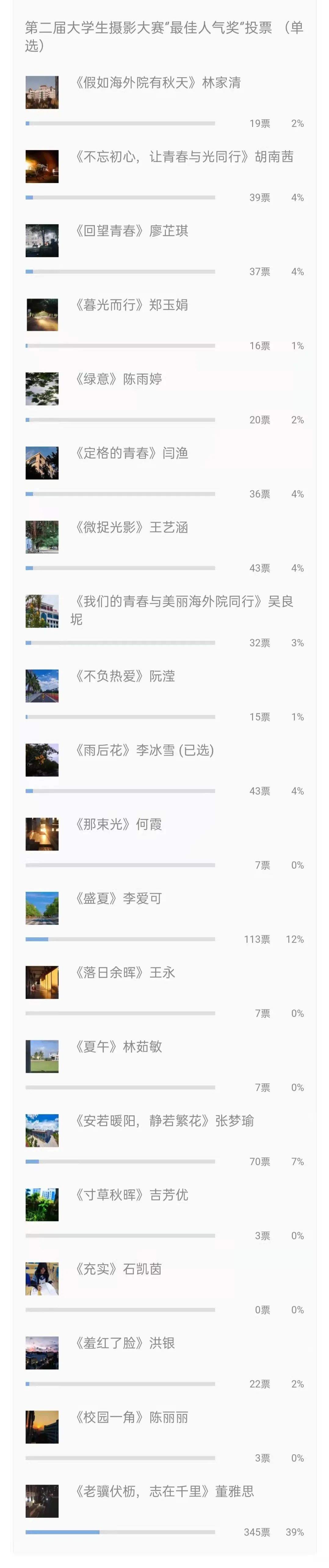 校园印记,相伴韶华。春洒、热夏、秋酿、知寒,历经两天的线上投票落下帷幕,十一月的末端寒意渐浓,投票结果温暖来袭。