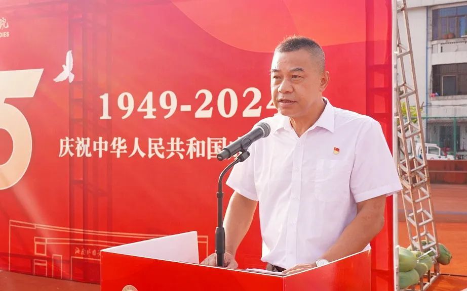 仪式上,陈正强发表讲话,寄语同学们要坚定理想信念,厚植家国情怀。全面加强爱国主义教育,深入实施“时代新人”铸魂工程,大力培育和践行社会主义核心价值观,进一步坚定广大师生理想信念,引导师生把爱党、爱国与爱省、爱校结合起来,以主人翁姿态积极投身到海南自贸港建设和推动学校事业高质量发展的新征程上来;要不忘初心使命,不断砥砺前行。大力弘扬教育家精神,树立“躬耕教坛、强国有我”的志向和抱负,广大学生要争做有理想、敢担当、能吃苦、肯奋斗的新时代好青年,积极发出“请党放心、强国有我”的时代最强音;要坚持与时俱进,主动奋发有为。认真学习专业知识和技能,积极参加社会实践,全面拥抱数智时代,勇立时代潮头,勇担时代使命,努力成长为具备全球视野、胸怀强国之志的时代新人,为国家进步和社会发展贡献青春的智慧和力量。