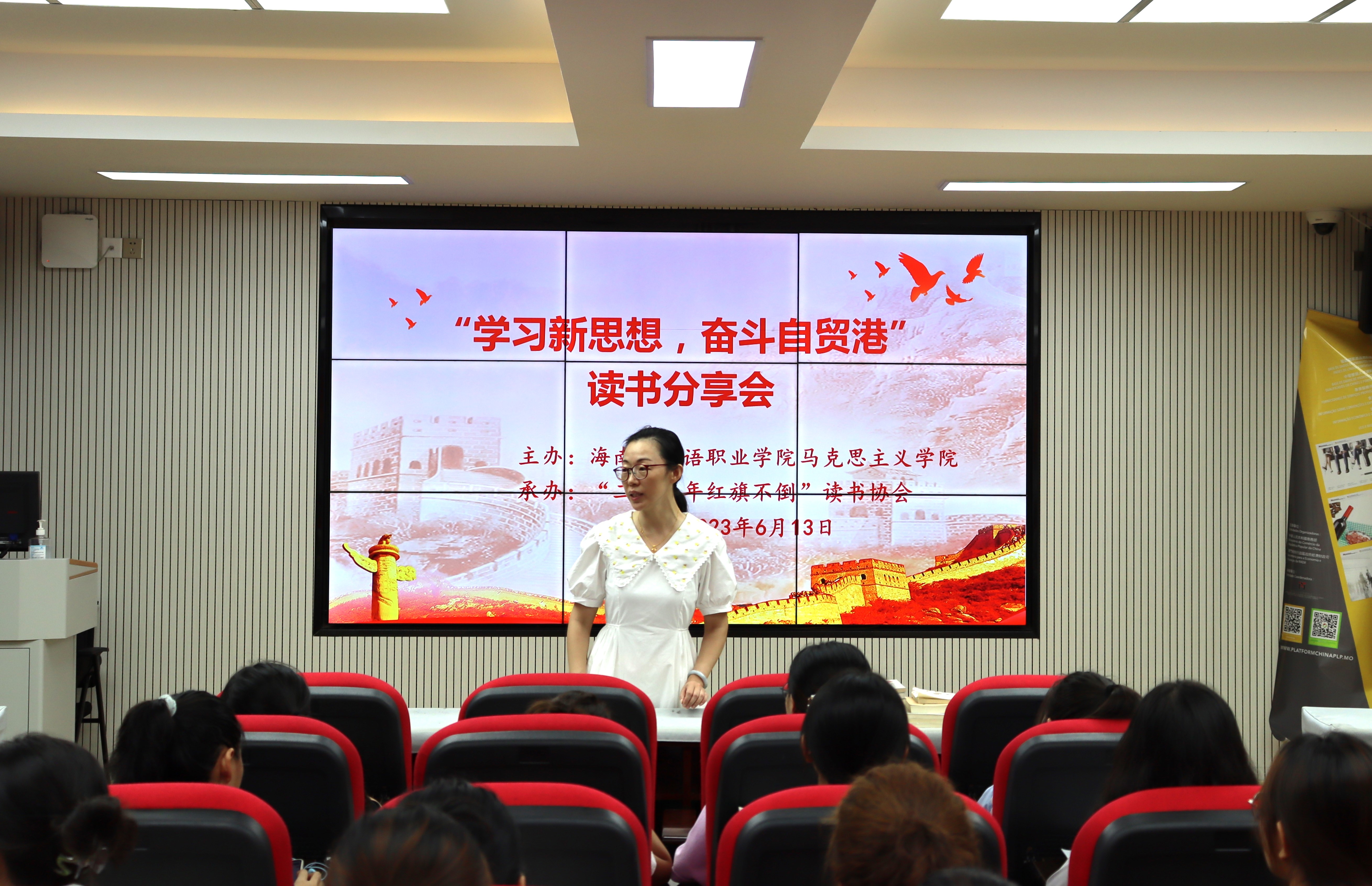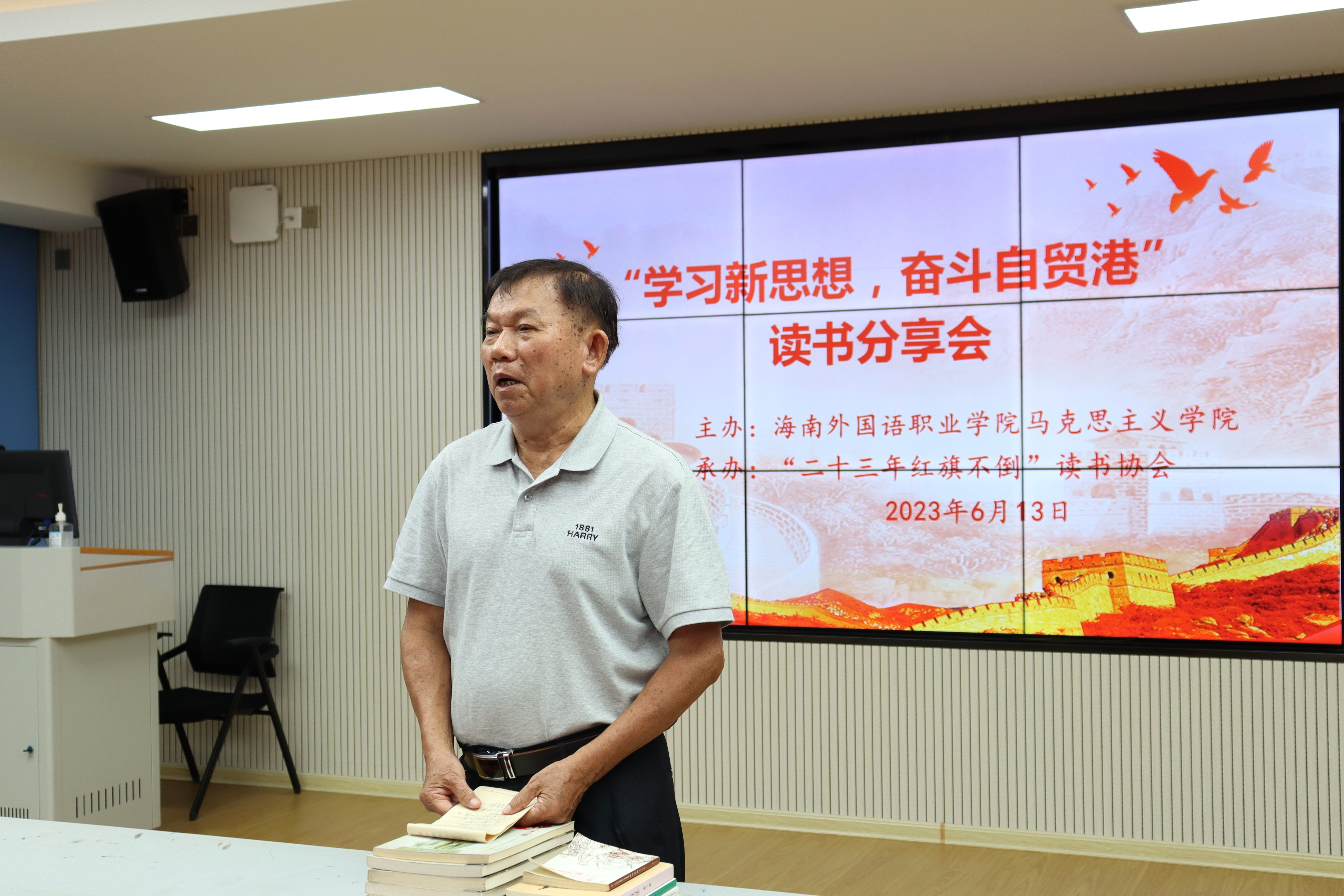 为学习贯彻习近平新时代中国特色社会主义思想主题教育和深入学习马克思主义思想,提高思想政治素养,培养青年大学生成为中国特色社会主义事业的践行者和奋斗者,6月13日,开云kaiyun登录入口“二十三年红旗不倒”协会在多媒体教室7开展“学习新思想,奋斗自贸港”读书分享会。协会指导老师赵佳钰主持本场活动,关心下一代工作委员会韩祝畴主任、团委韩琪老师及团委学生干部参加本场分享会。