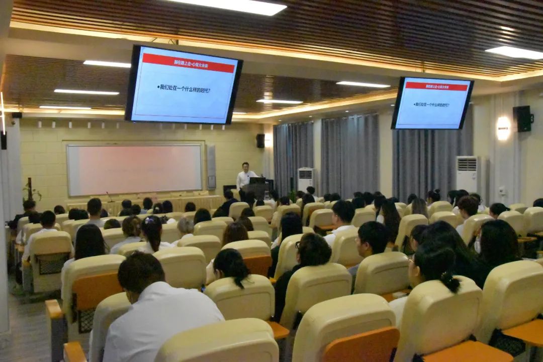 郑鹏副部长以“我们处在一个什么样的时代”、“如何做一名优秀的学生骨干”作为切入点引出本次会议的主题——脚在路上走,心有大未来。他表示,团学干部是学生中的精英与骨干,随着新时代的发展,团学干部只有不断提高自身的理论知识和综合能力,才能更好为学生服务。