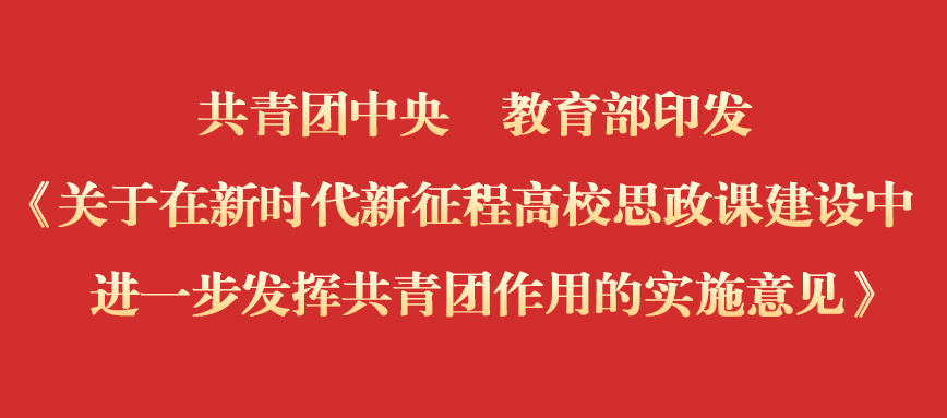 为贯彻落实习近平总书记在全国教育大会上的重要讲话、对学校思政课建设的重要指示精神,充分发挥共青团在高校学生思想政治工作中的主力军作用,守正创新推动高校思政课建设内涵式发展,共青团中央、教育部近日联合印发《关于在新时代新征程高校思政课建设中进一步发挥共青团作用的实施意见》(以下简称《意见》)。