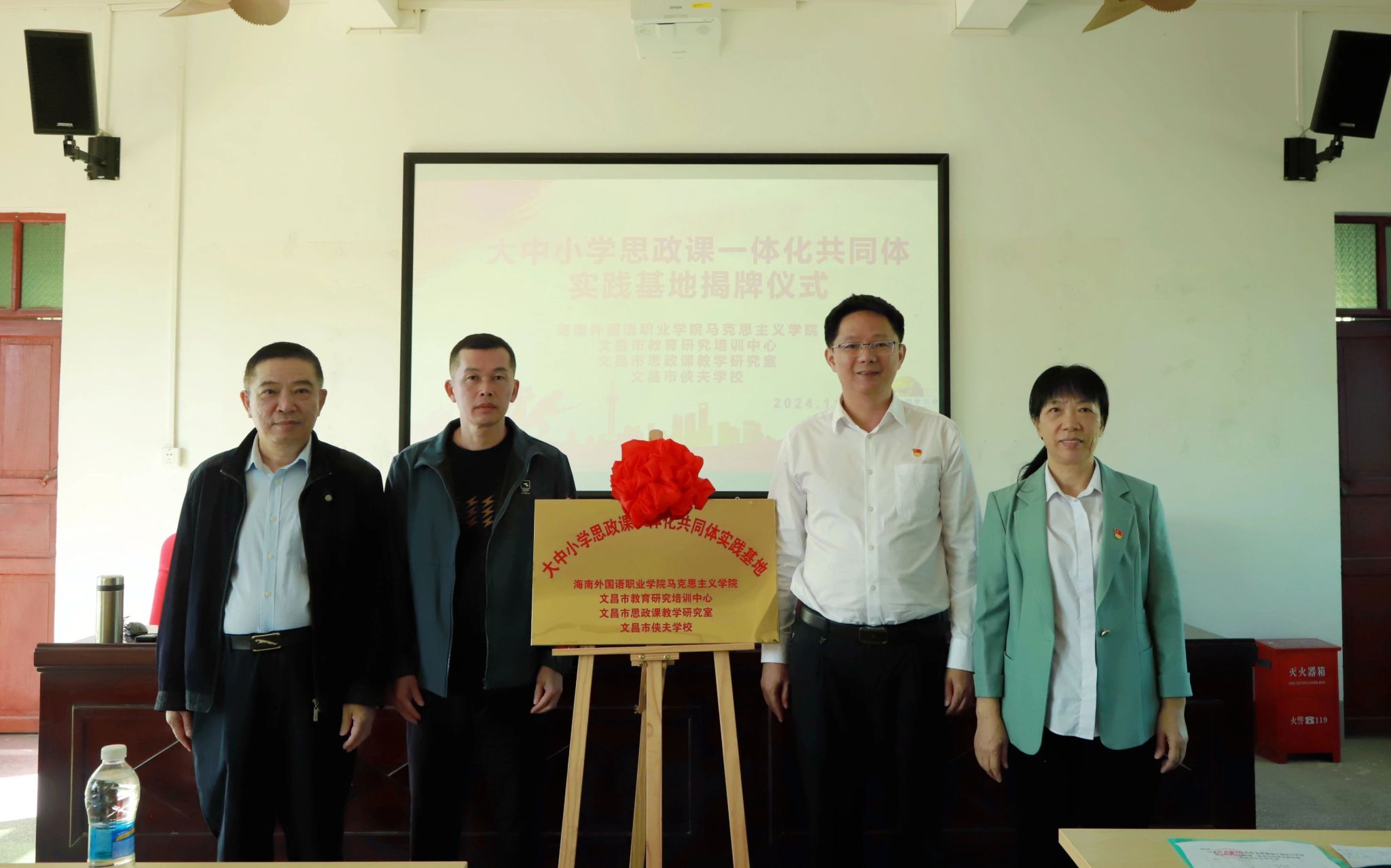 近日,开云官网马克思主义学院、文昌市教育研究培训中心、文昌市思政课教学研究室、文昌市侠夫学校共建大中小学思政课一体化共同体实践基地揭牌仪式在文昌市侠夫学校举行。