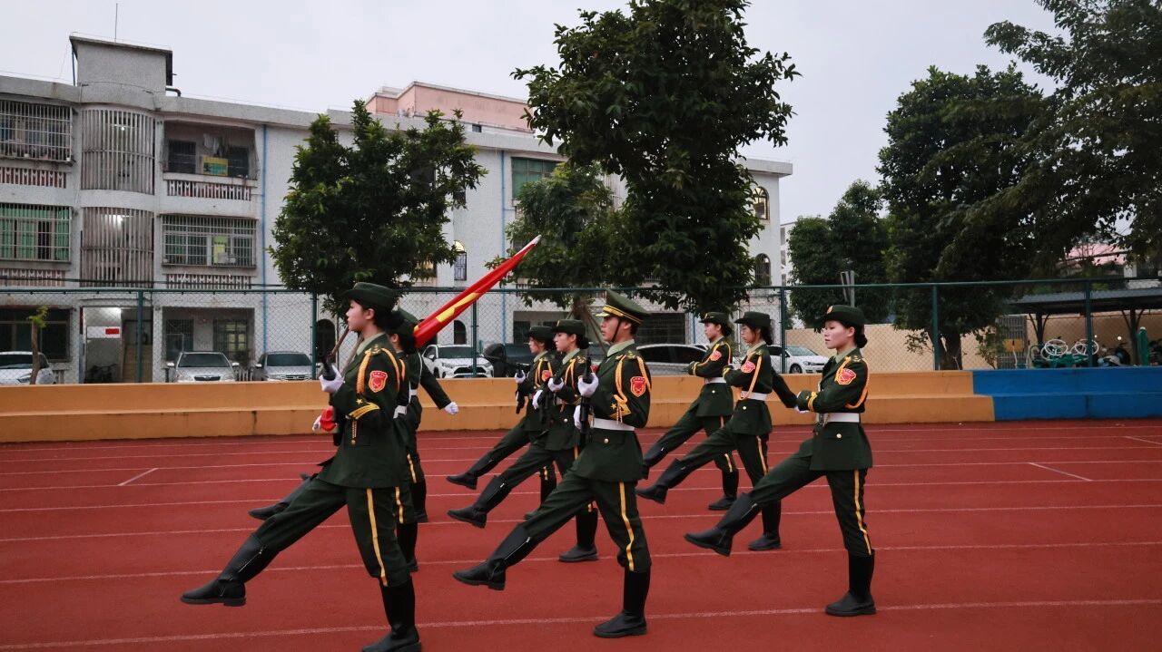 队列齐整划一,神情肃穆坚定