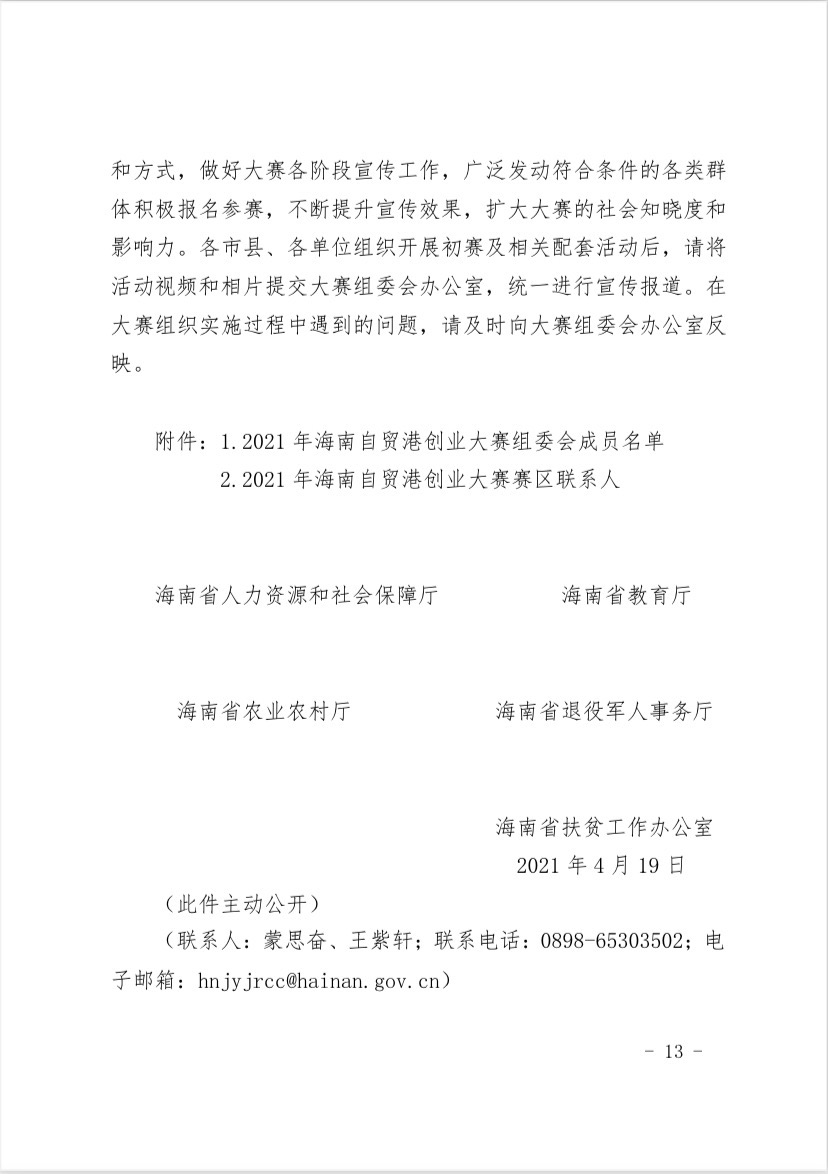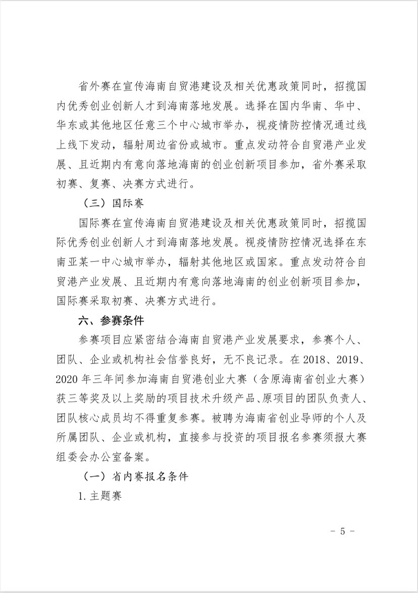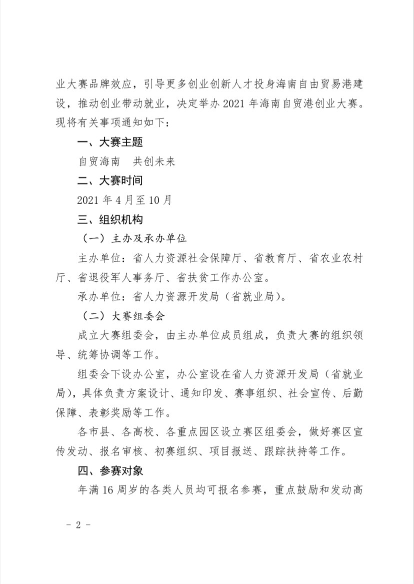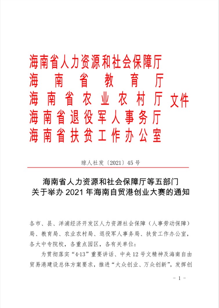 海南省人力资源和社会保障厅等五部门关于举办2021年海南自贸港创业大赛的通知