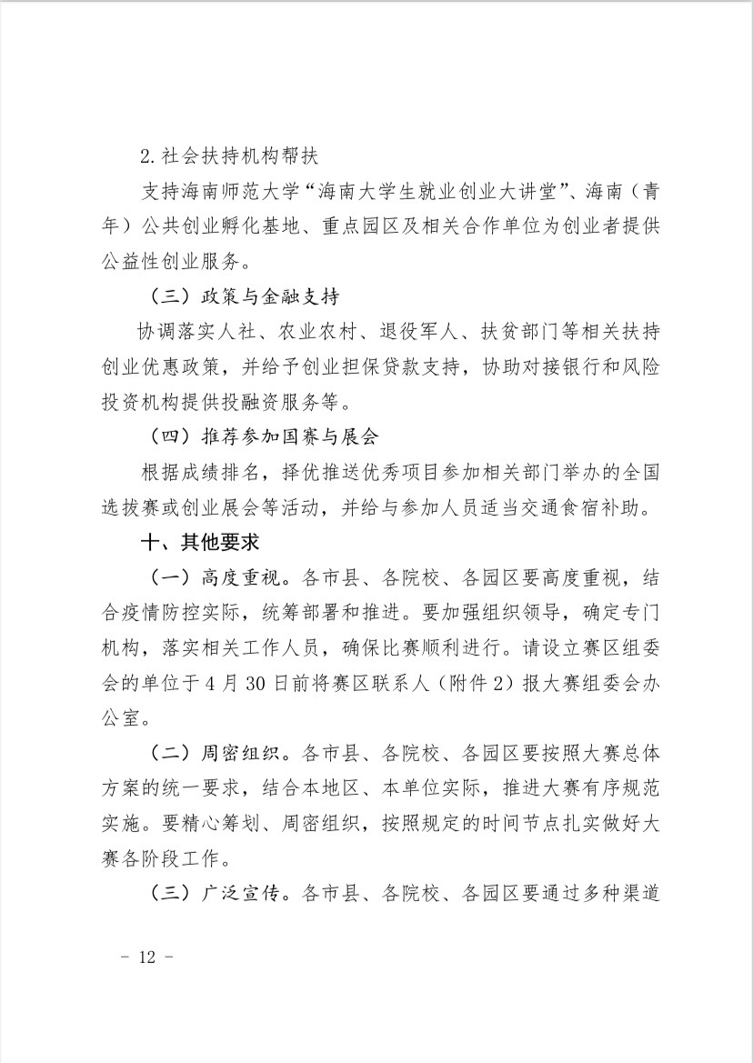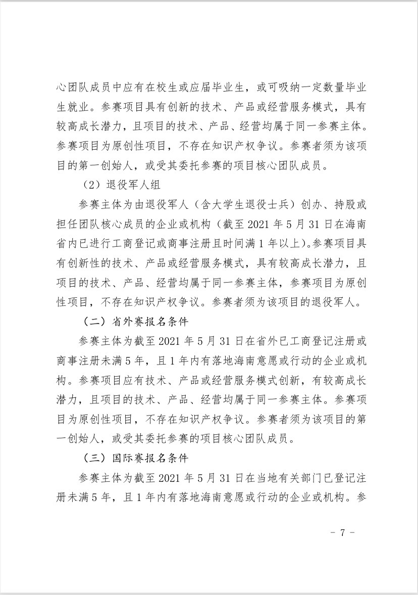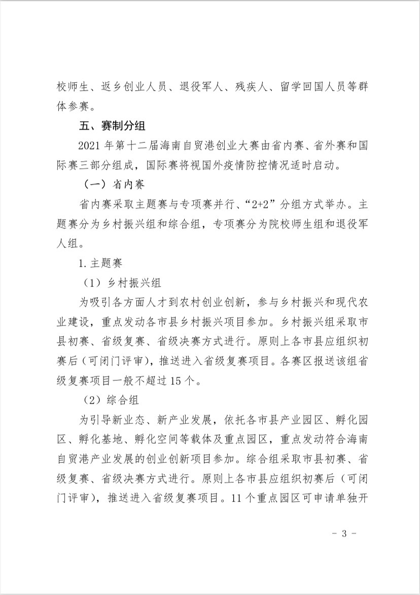 海南省人力资源和社会保障厅等五部门关于举办2021年海南自贸港创业大赛的通知