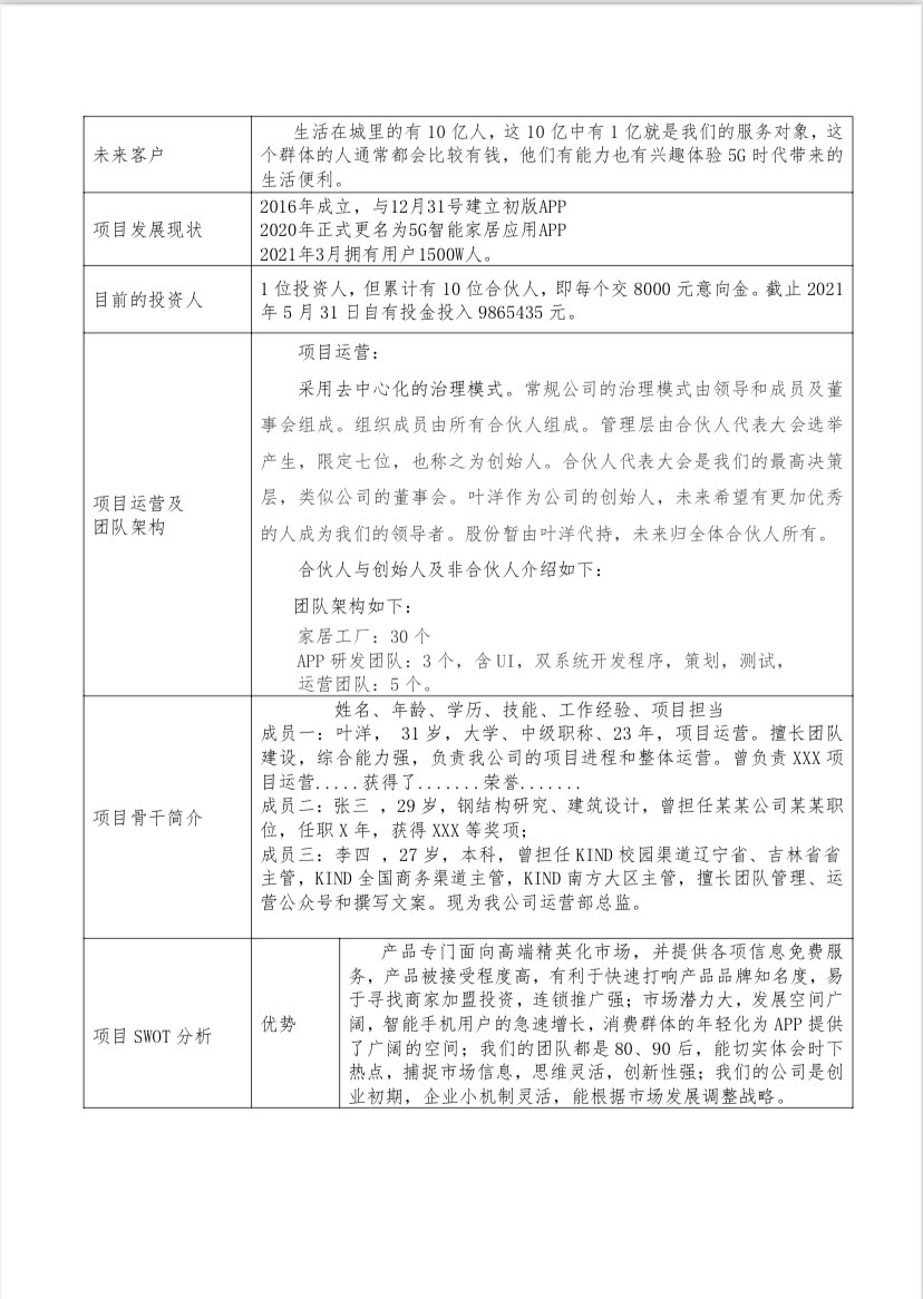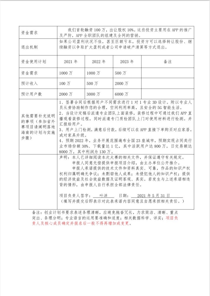 2021年海南自贸港创业大赛项目计划书简本——范本