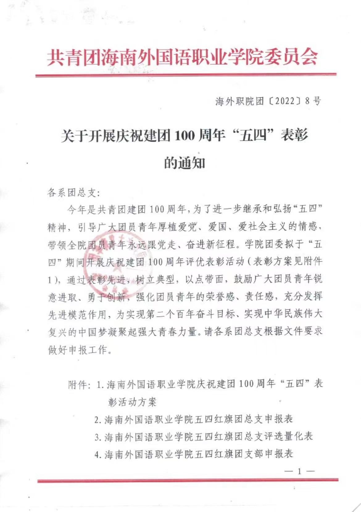 关于开展庆祝建团100周年“五四”表彰的通知