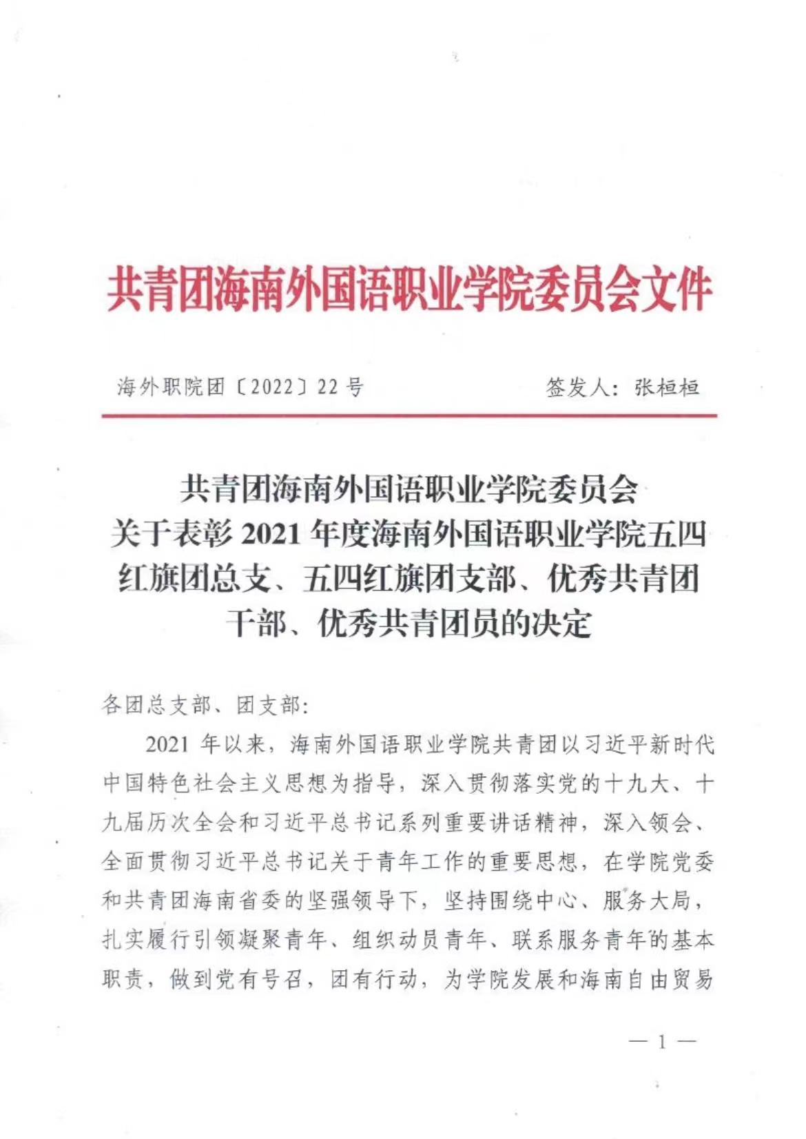 共青团开云kaiyun登录入口委员会关于表彰2021年度开云kaiyun登录入口五四红旗团总支、五四红旗团支部、优秀共青团干部。优秀共青团员的决定