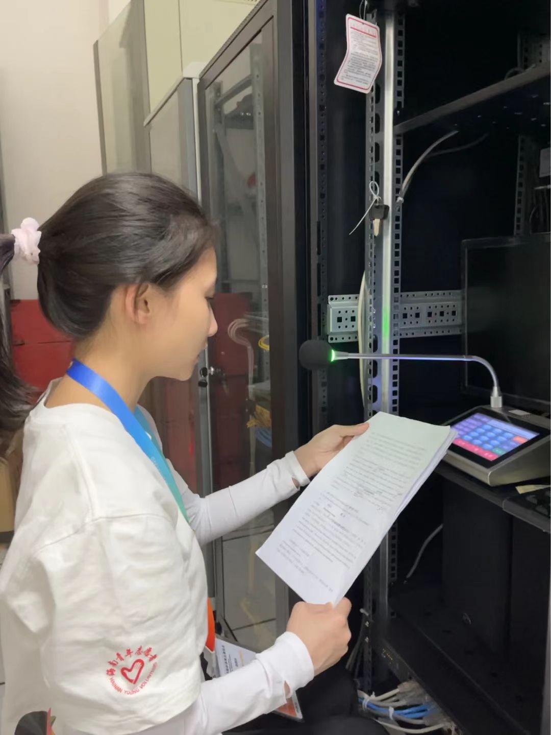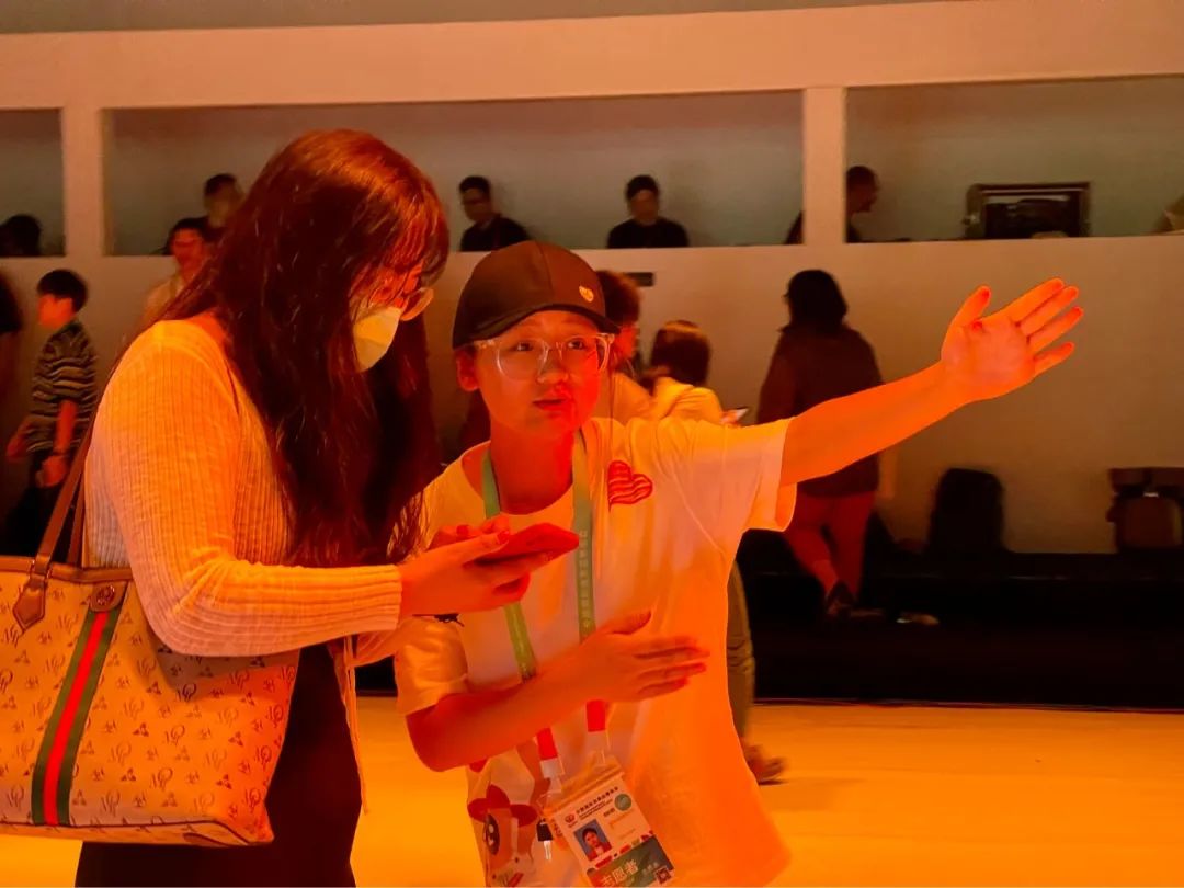 “2号馆急救中心点遗失一台轮椅,如有发现者或使用完毕后归还2号馆服务台”“三号馆洗手间捡到一部手机,请失主前往大厅总服务台领取”……场馆播音组志愿者陈彦伶同学每一天的工作从会场的麦克风开始。她说:“从刚开始的担心、紧张到现在的从容,播音的语速与音量都能很好的把控。这是一份既暖心又有爱心的工作,能帮助焦急寻物的失主们找到失物,同时她希望以后还能有这样的志愿服务工作。”