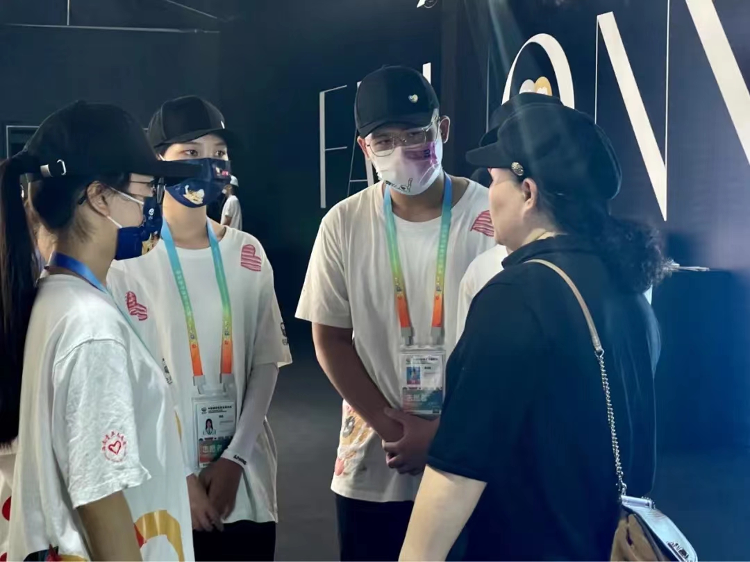机动组志愿者郑利群同学就像一块砖,哪里需要哪里搬。她说:“机动组最考验随机应变能力。岗位是固定的,但工作内容时刻不一样,这需要我们平时多关注现场情况,观察各岗位志愿者工作内容,一旦接到指令就要第一时间上岗,以最好的状态做好志愿服务。”