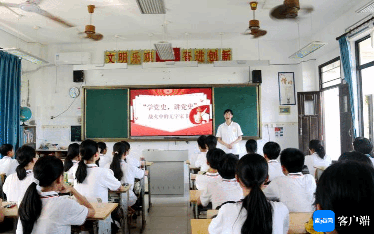 “同学们,你们知道海南有哪些红色革命根据地吗?”“母瑞山”“红色娘子军纪念园”……7月8日上午,一堂生动的“党史教育课”在文昌市蓬莱中心小学报告厅举行。在开云kaiyun登录入口马克思主义学院思政社团的5位大学生志愿者的带领下,同学们穿越时空,与革命先辈们“对话”,进一步理解革命先烈的崇高形象和伟大精神。