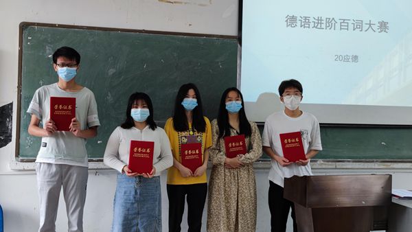 20级应用德语班于5月9日早上在1303教室进行了德语进阶百词大赛活动,旨在考察学生的单词积累量及通过比赛形式提高学生的学习积极性。内容以汉德互译,选词填空等方式为主,学生在规定时间内完成回答并上交。