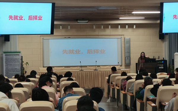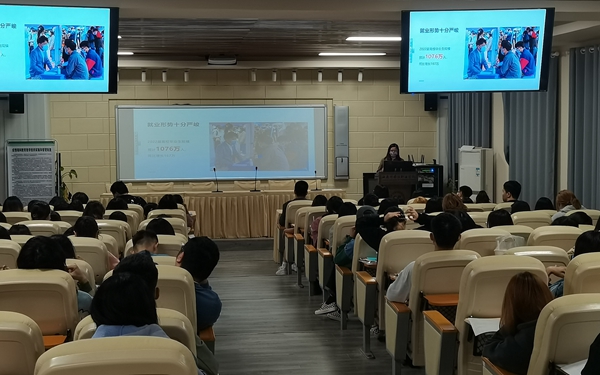 会上,潘老师还和同学们分析了今明两年严峻的就业形势,鼓励大家“先就业,后择业”,以积极、负责任的态度开展实习就业,为家庭减轻负担,为社会稳定贡献自己的一份力量。