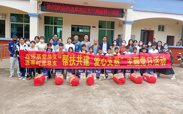 为进一步深化党史学习教育,推进“我为群众办实事”实践活动,我系党总支部与文昌市蓬莱镇蓬莱村党总支部达成结对共建单位,共同发挥党建引领作用,促进党建优势互补,构建基层党组织结对共建新格局。1214日,西语系党总支部一行20名师生党员前往蓬莱镇蓬莱村,与蓬莱村党总支部开展“帮扶共建 爱心支教”主题党日活动。