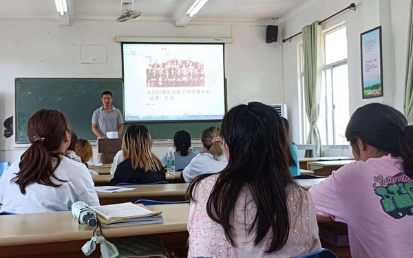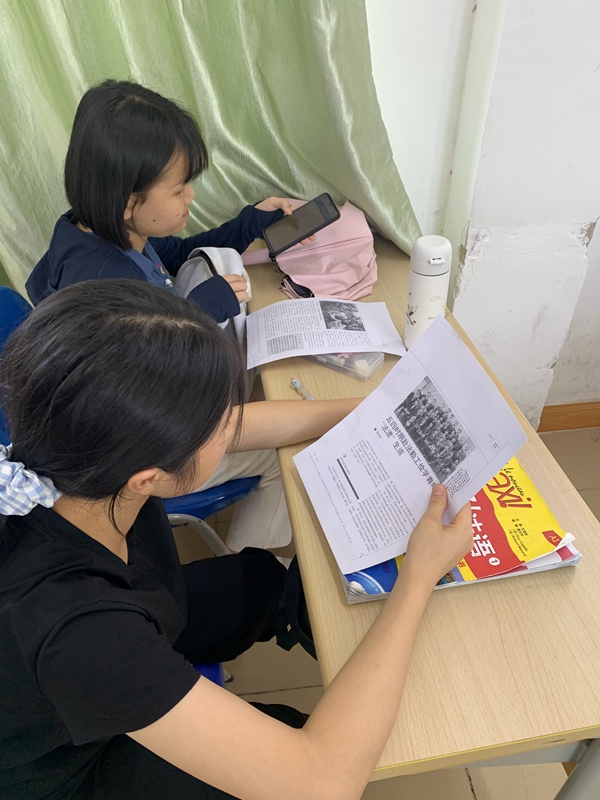 林师茂老师首先通过“头脑风暴”的方式,让大家自由讨论并发表自己对一百年前赴法勤工俭学运动的认识和了解,一些同学知道邓小平和周恩来同志等中共早期领导人曾赴法勤工俭学,而一部分同学对这段历史的了解相对较少,随后老师给同学们发放了《五四时期赴法勤工俭学青年的“法漂”生活》的一篇文章,以3人小组的形式阅读文章并讨论,让大家对这一段历史的背景有了更深入的了解。