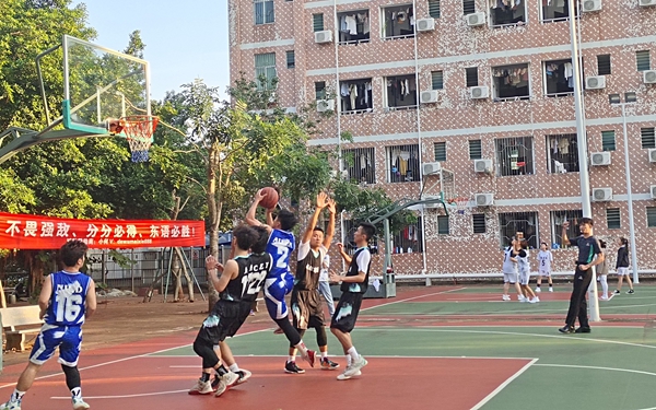 他们精神饱满,斗志昂扬,铆足劲向上投篮,全神贯注盯着对方的一举一动绝不放过任何机会,帅气的控球精准的投篮默契的配合,在阳光的照射下,闪耀出青春的光芒。