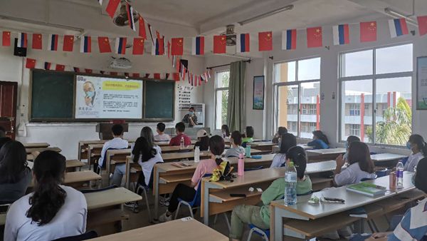 2020年5月20日,西语系已返校的102名学生在各班老师带领下积极开展了《复学第一课》主题活动。上午7点50分,教师和学生都佩戴好口罩,间隔一米,井然有序地进入一号教学楼。在课堂上教师带领学生复习了防疫卫生知识和学院各级管控措施规章,分享了疫情期间一线医务人员、民间爱心人士的感人事迹,带领学生梳理了国内外抗疫情况和相关新闻,学生受益良多。
