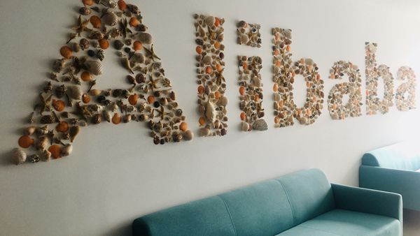 用体现海南特色的贝壳组成的阿里巴巴logo