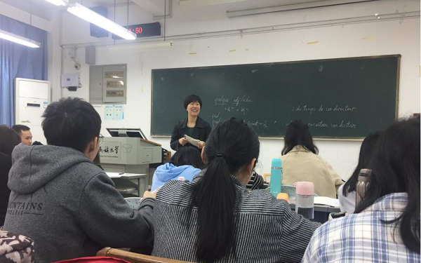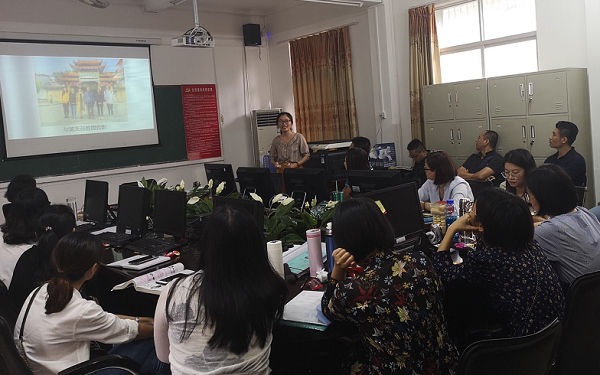 法语专业老师黄牡丹在进行外出体验学习汇报