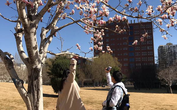 初春的北京已十分可爱,花儿吐嫩蕊,柳树冒新芽,同学们也按捺不住心中的雀跃,要与春天来一张美丽的合影。