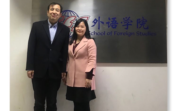 与对外经济贸易大学外语学院党委书记田文泉合影