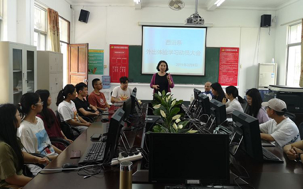 阳春三月,草长莺飞,神州处处,生机盎然。在学院领导的大力支持和系部领导的亲自部署下,西语系第二批外出体验学习即将成行。在出发前,西语系系主任高凤兰教授召集参加交流的师生召开了大会,就安全事项和学习任务做了重点布置。