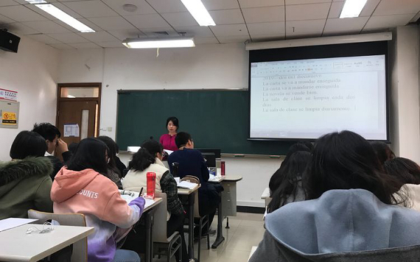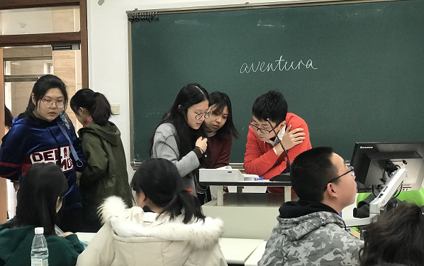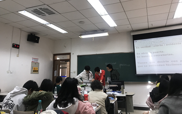 最受学生们喜爱的郑皓瑜老师更是展现了更迷人的专业风范,妙语连珠,信手拈来,融洽的课堂氛围,引领着学生们畅游美妙的西班牙语世界。学生们紧紧跟随着郑老师的节奏,收获了满满的知识,真是让人直呼过瘾。一早上的课下来,郑老师圈粉无数。学生们表示,能参与到这样的课堂,感到非常幸运。