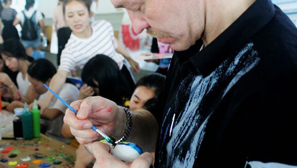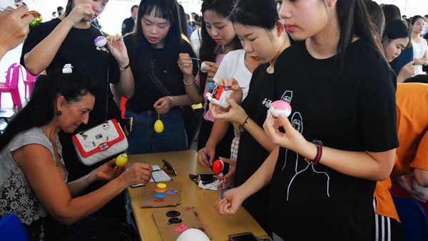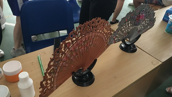 除了俄德法葡几个专业绘画复活节彩蛋外,西班牙语还进行了西班牙传统纸扇绘画。