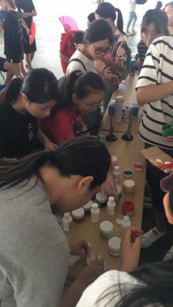 本次活动分为西语系欧洲国家与语言介绍以及专业办学成果展示、欧洲民族服饰展示、俄德法葡复活节彩蛋和西班牙传统纸扇绘画。