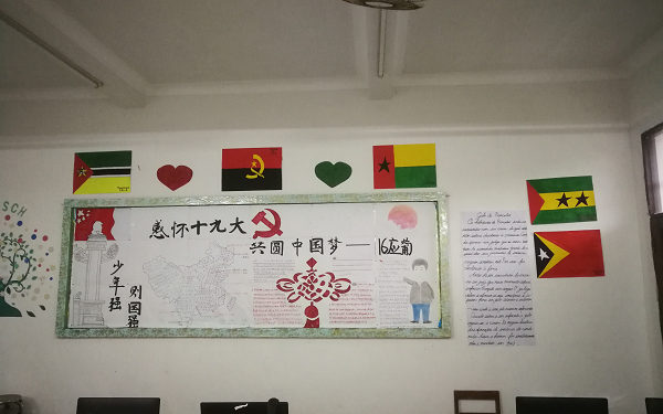 走进16应葡班的教室,大家都非常认真的观看着,学习着。这里不仅展示了说葡语的各个国家的国旗,同时也介绍了葡萄牙的特色文化,让大家受益匪浅。