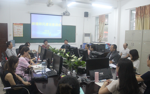 座谈会上,李南群书记介绍了西语系开展师德师风教育的各项举措及开展的活动,并结合工作实际发表个人看法,建议新学期开学可举行教师宣誓仪式,进一步增强师德师风意识。高凤兰主任也从教育教学和教师自身发展等方面畅谈了自己的看法,强调在当前海南全面深化改革的大背景下,各位老师除了基本的常规教学工作外,同时也要注重自身的发展,跟紧时代步伐、满足时代发展的需要。郭峰、黄小恒和冯浪等老师分别分享了各自对于师德师风建设的看法,认为可以向身边的优秀老师学习为切入点,以访谈或文稿的形式,分享优秀老师的日常工作及学习成长之路,利用学院官网、微信公众号加以宣传,并鼓励全校老师共同学习加强师德师风建设。
