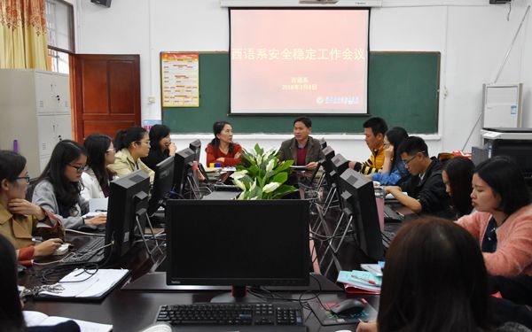 2018年38日下午,西语系组织召开了安全稳定工作会议。会议由西语系党总支书记李南群主持,西语系主任高凤兰教授及全体教师参加。