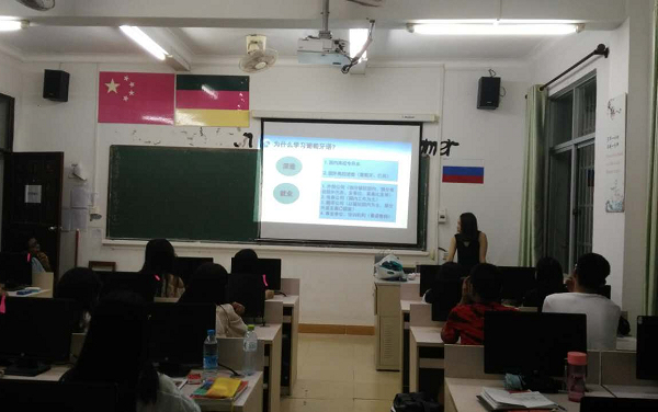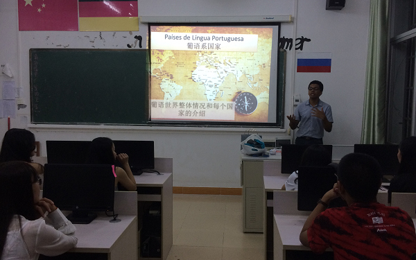 随后,葡萄牙语外籍教师约拿单向学生介绍了葡语国家的概况,他风趣幽默、浅显易懂的讲解博得了同学们的阵阵掌声,使同学们对今后的学习生活充满了无限的向往。