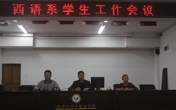 12月4日晚8点,我系在多功能报告厅举行西语系学生工作会议,我系全体学工人员及全系学生参加,本次会议由团总支书记顾大育老师主持,党总支书记李南群、学生科科长莫少金两位老师主讲。