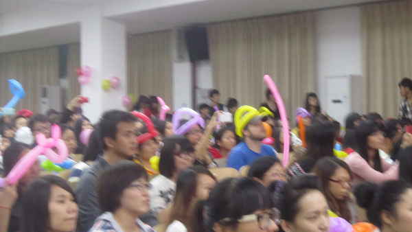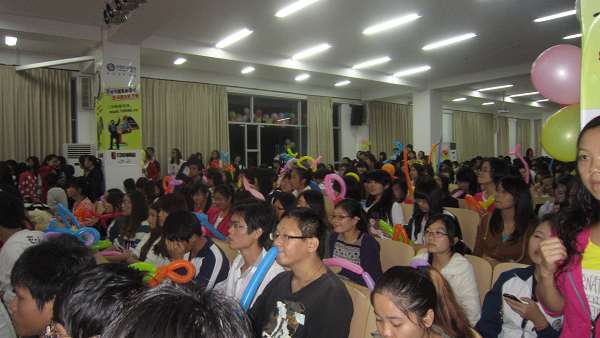 随着西语系、旅游系两个系的精彩节目不断上演,晚会出现了两个高潮,首先就是当西语系12应葡班同学带来B-box口技表演时,全场观众都被表演者那种高超的演技震撼了。只见各种各样的鼓点声、乐器声从口技表演者的口中发出来,让人分辨不出真假。更神奇的是,表演者居然能够用鼻子、用耳朵和用脖子的肌肉发出各种各样的声音来,现场不断发出一声声惊叹。当表演结束,全场爆发出热烈的掌声。而另一个高潮则来自于由旅游系带来的舞蹈《江南style》。当红遍全国的《江南style》乐典声响起时,全场观众的欢乐达到了顶点。