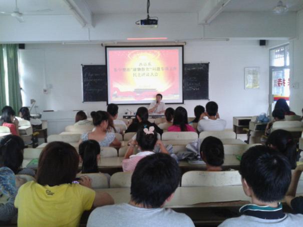20121017下午4点半西语系直属党支部在多媒体四教室召开了集中整治“庸懒散贪”问题专项工作民主评议大会,系全体教师和50名学生代表参加了会议。系党支部书记张政同志主持了会议。