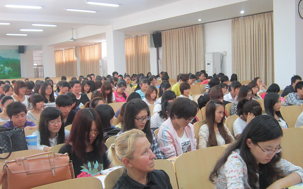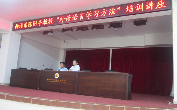 陈国亭教授近一个小时的实实在在的语言学习方法传授,深深地吸引住了在场的每一位师生。当讲座结束时,全场爆发出了热烈的掌声。